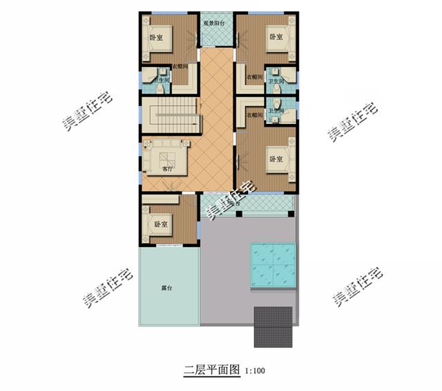 二樓設有三主臥帶衣帽間與衛(wèi)生間,客廳,次臥,露臺,每個房間都帶獨衛(wèi),二層的面積是在臥室上面,臥室多。不怕家里人多