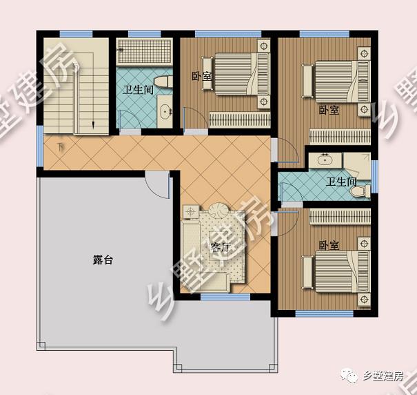 二層主要為居住層,設(shè)計(jì)三間臥室,客廳,衛(wèi)生間,超級(jí)大露臺(tái),獨(dú)衛(wèi)和公衛(wèi)結(jié)合方便生活,大露臺(tái)可以給家人更多自然氣息,生活更加自在。