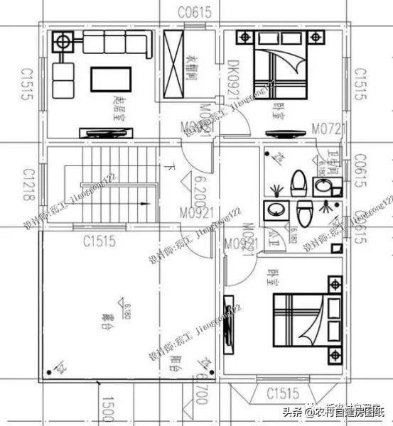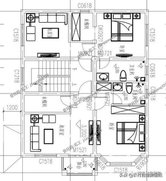建筑設計尺寸:開間12米,進深9米,占地面積101.8平米,建筑面積309.4平米。一層1室3廳1廚1衛(wèi),二層3室2廳1衛(wèi)1陽臺,三層室內(nèi)布局和二樓一致。