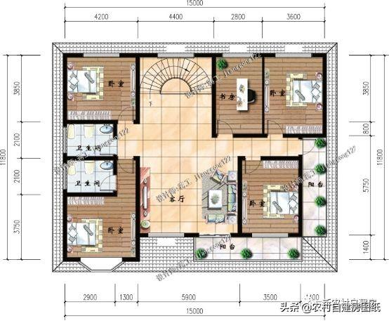 開間15米,進深11.8米,占地面積160.32平方米,主體參考造價30—35萬之間。一層明廚明衛(wèi),設(shè)立單獨的洗衣房。二層朝南臥室?guī)в袃?nèi)衛(wèi),觀景陽臺富有生活氣息。