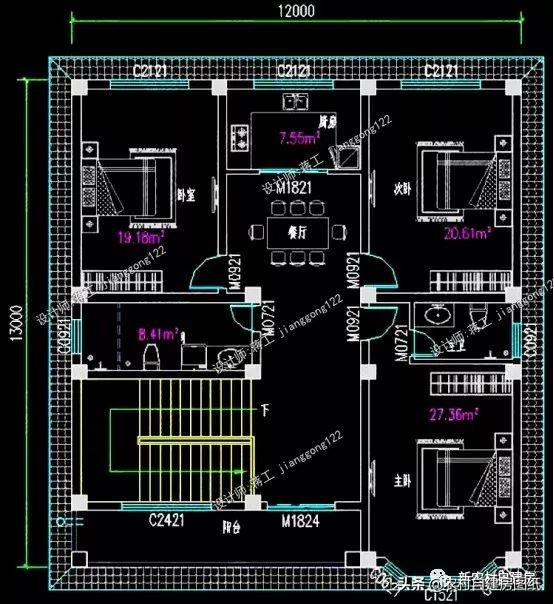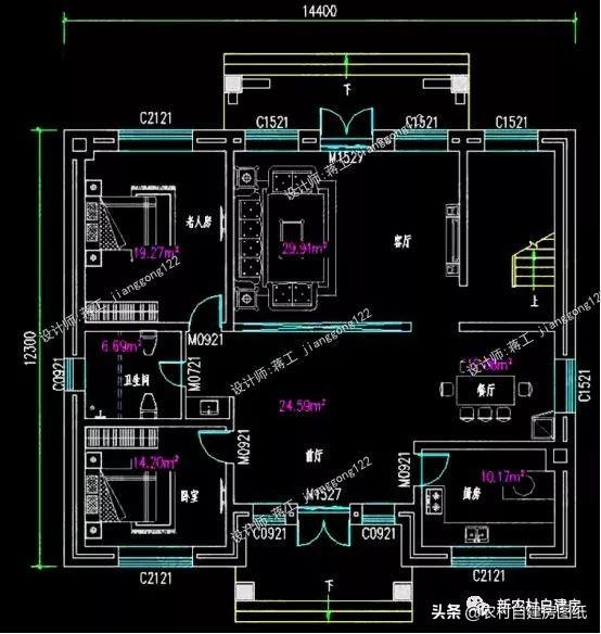 開間12米,進深13米,占地面積144平方米,建筑面積290平方米。