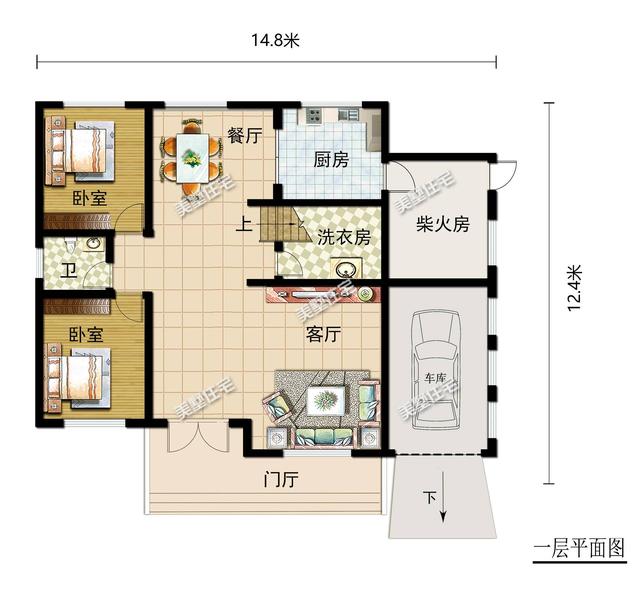 多臥室,一二層有餐廳、客廳、柴火房,帶車庫、衣帽間。