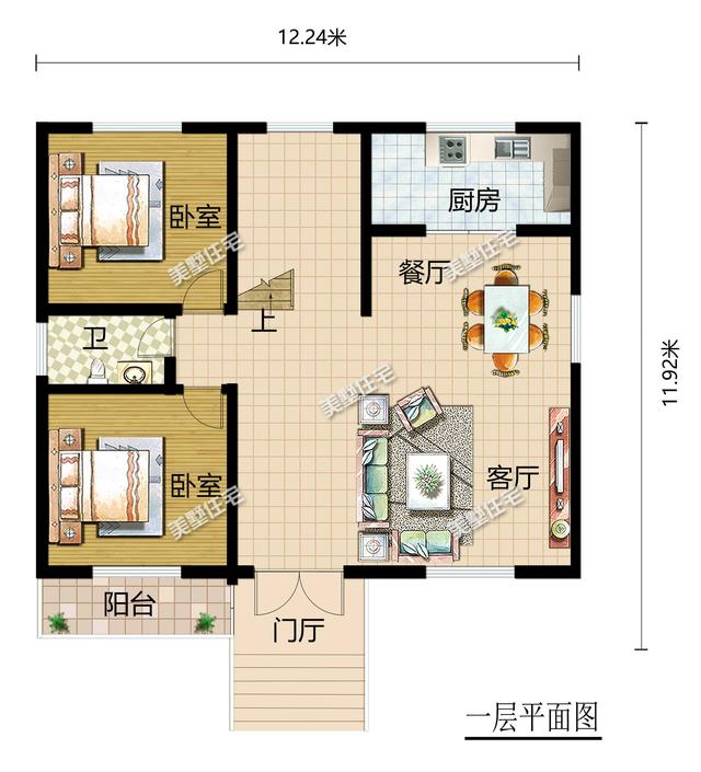 多臥室,一二層有餐廳、客廳,帶陽臺。