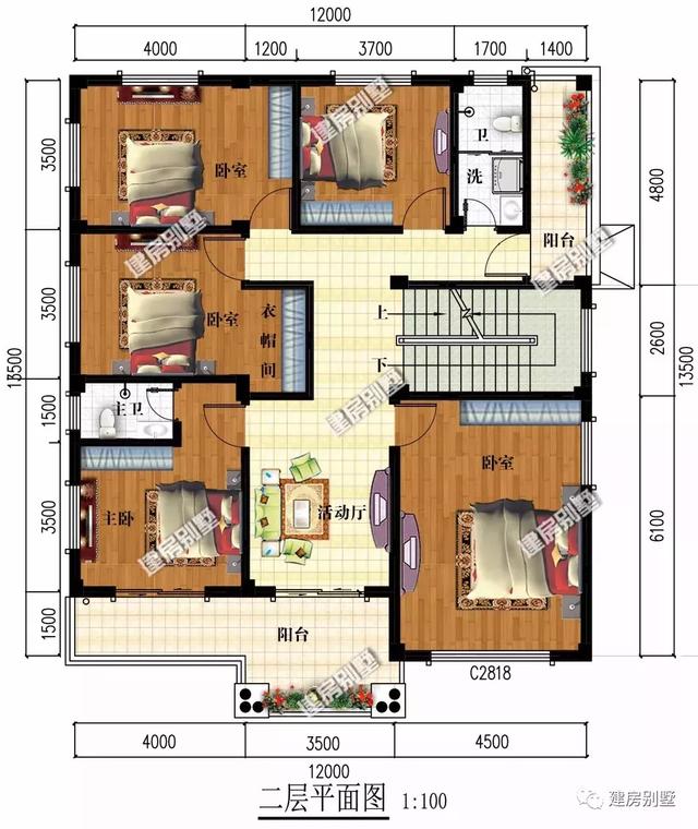 歐式別墅一:12×12米,占地面積152.57平方米,建筑面積418.88平方米,框架結(jié)構(gòu),墻面主要是用真石漆裝飾,屋面配紅瓦,用到了多邊形采光大窗,氣派非凡。