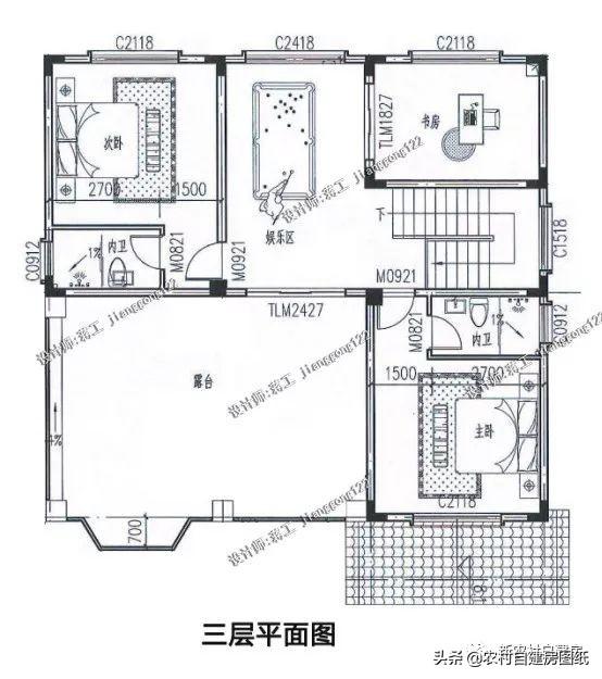 三層2間臥室?guī)l(wèi)生間,屋頂露臺,非常大,做個屋頂花園非常的舒適。