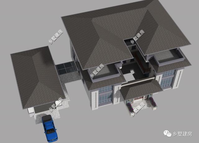 一款帶車庫的四合院,簡約大方,很多人心目中最理想的住宅!