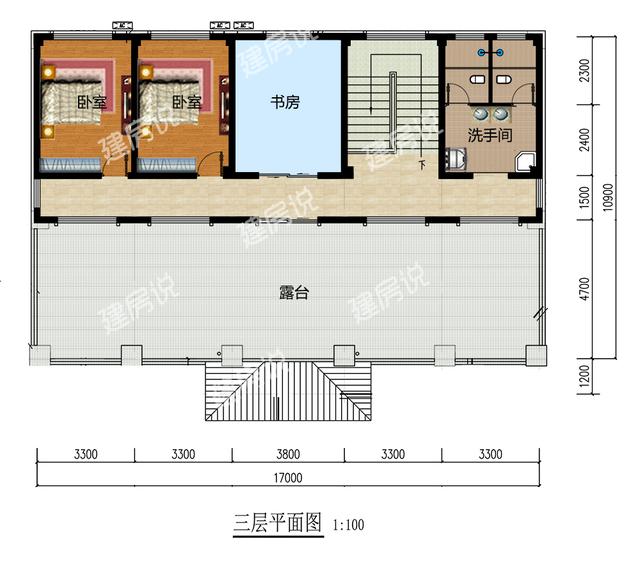 三層:2個(gè)臥室、書房、衛(wèi)生間、露臺(tái)
