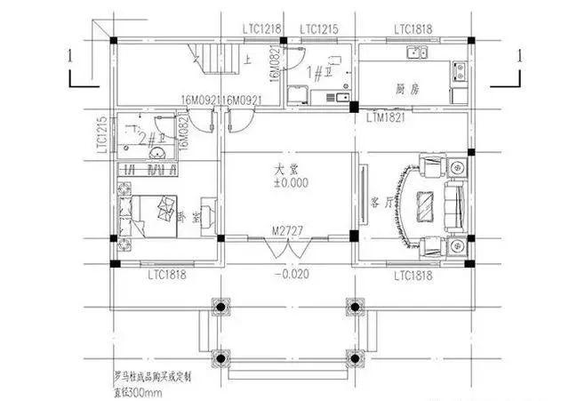 本戶型建筑面積320平方米,為傳統(tǒng)農(nóng)村房屋,一層設(shè)有大堂、客廳、廚房、老人房等。