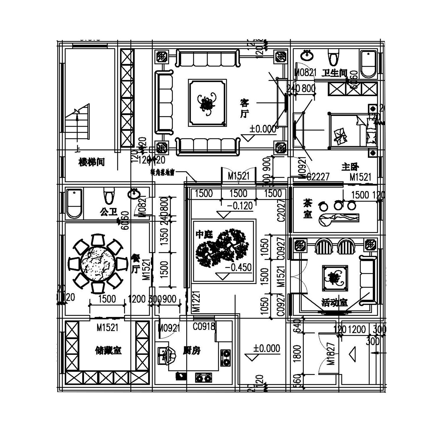 建筑占地:14.8m×13.8m