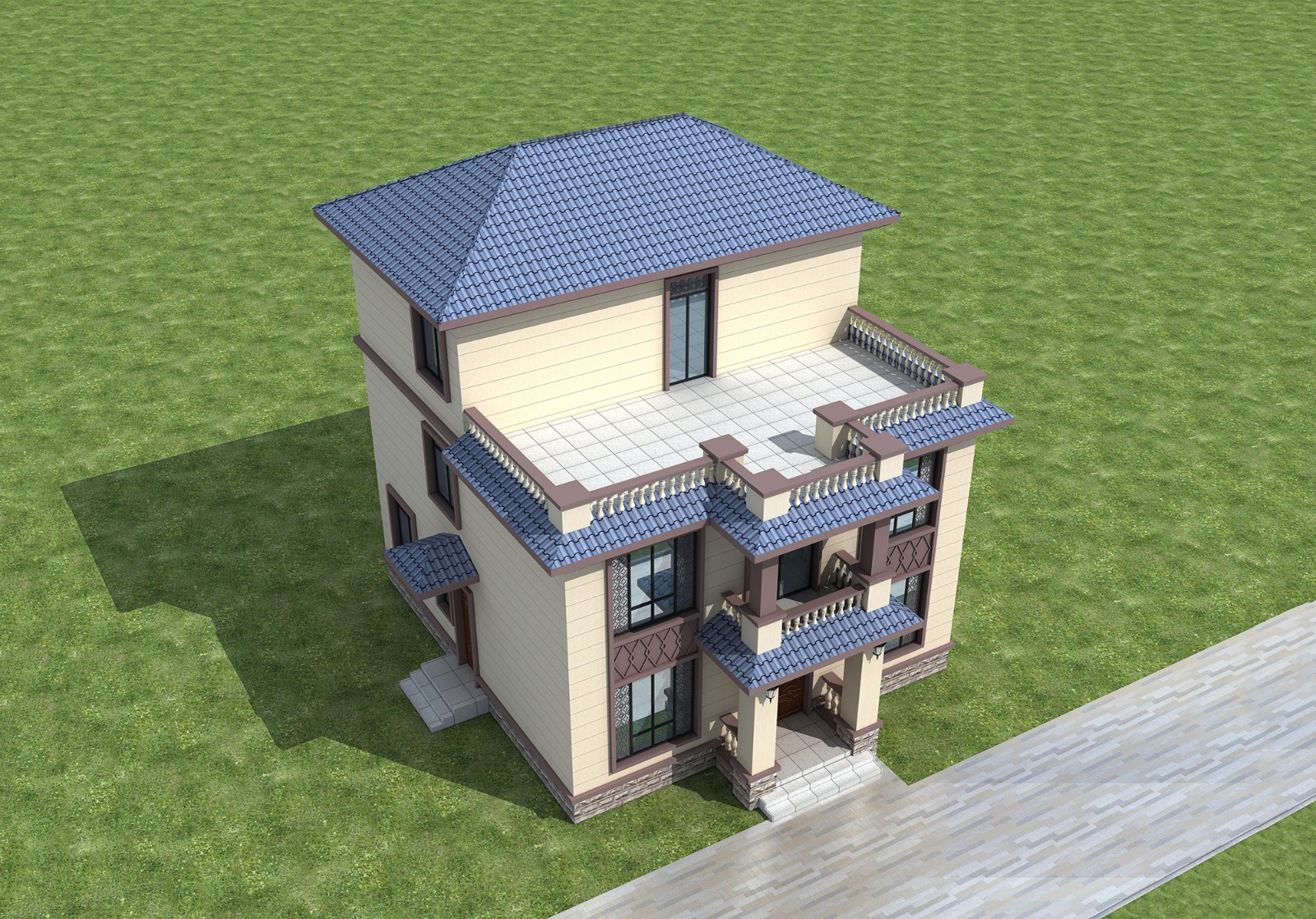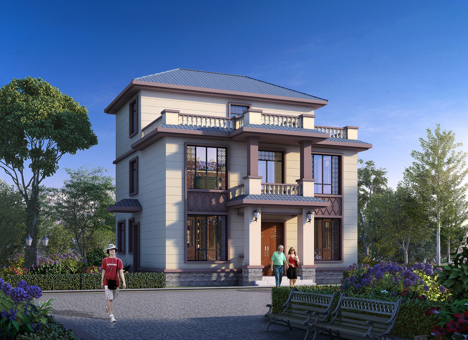 福建胡總的在外面發(fā)了財想回家建別墅,好光宗耀祖,我們給胡總私人訂制了一棟很不錯的別墅,這款是新中式別墅設(shè)計,有三層而且給人一種放松的感覺,別墅墻體是米白色的,外檐是紫色的,配上藍色屋頂非常漂亮。這款別墅空間大,餐廳和客廳被樓梯隔開臥室不沖著客廳,每一層的空間都不擁擠。