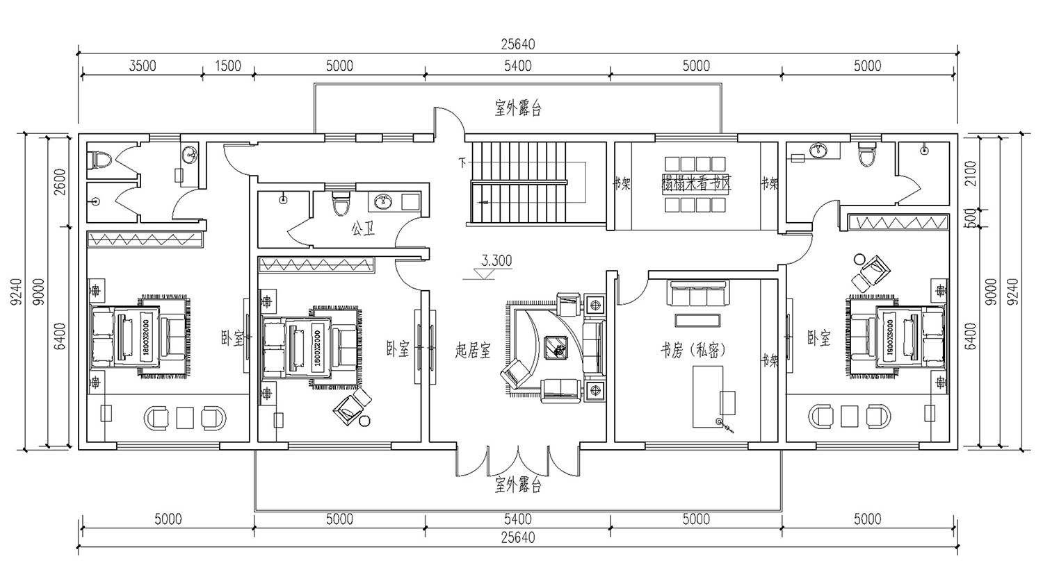 客廳、餐廳、廚房、臥室、公衛(wèi)、陽臺、露臺。