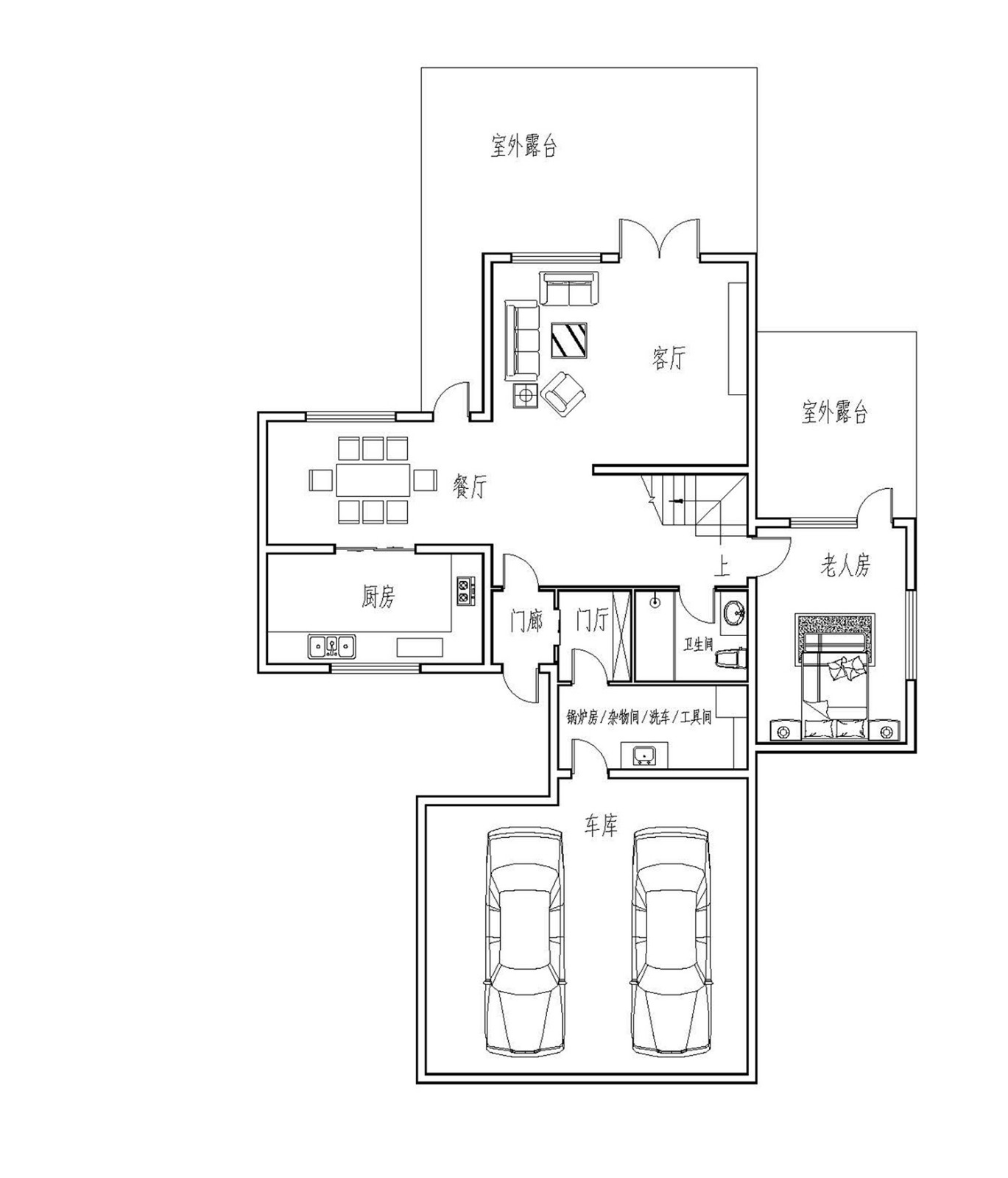 客廳、餐廳、廚房、臥室、公衛(wèi)、陽臺、露臺。