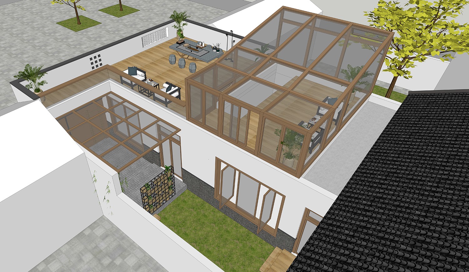 開間:10m一層新中式別墅設計,這款別墅極大地利用了土地面積
