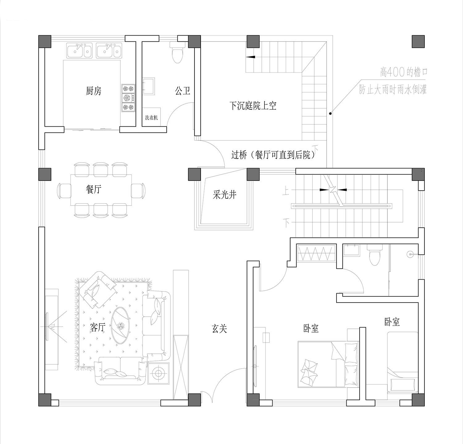 建別墅不能沒有庭院,有院墻的別墅才安全,不管二層的,三層的別墅都該有庭院。今天介紹的是二層別墅設(shè)計,現(xiàn)代風(fēng)格的,建二層就夠用,這套別墅造價實惠最高33.7萬元,別墅的外觀簡潔好看,有采光井室內(nèi)不暗淡,有前后門,客廳餐廳廚房在一條線上,空間看起來不小,共五個臥室滿足全家人的居住需求。