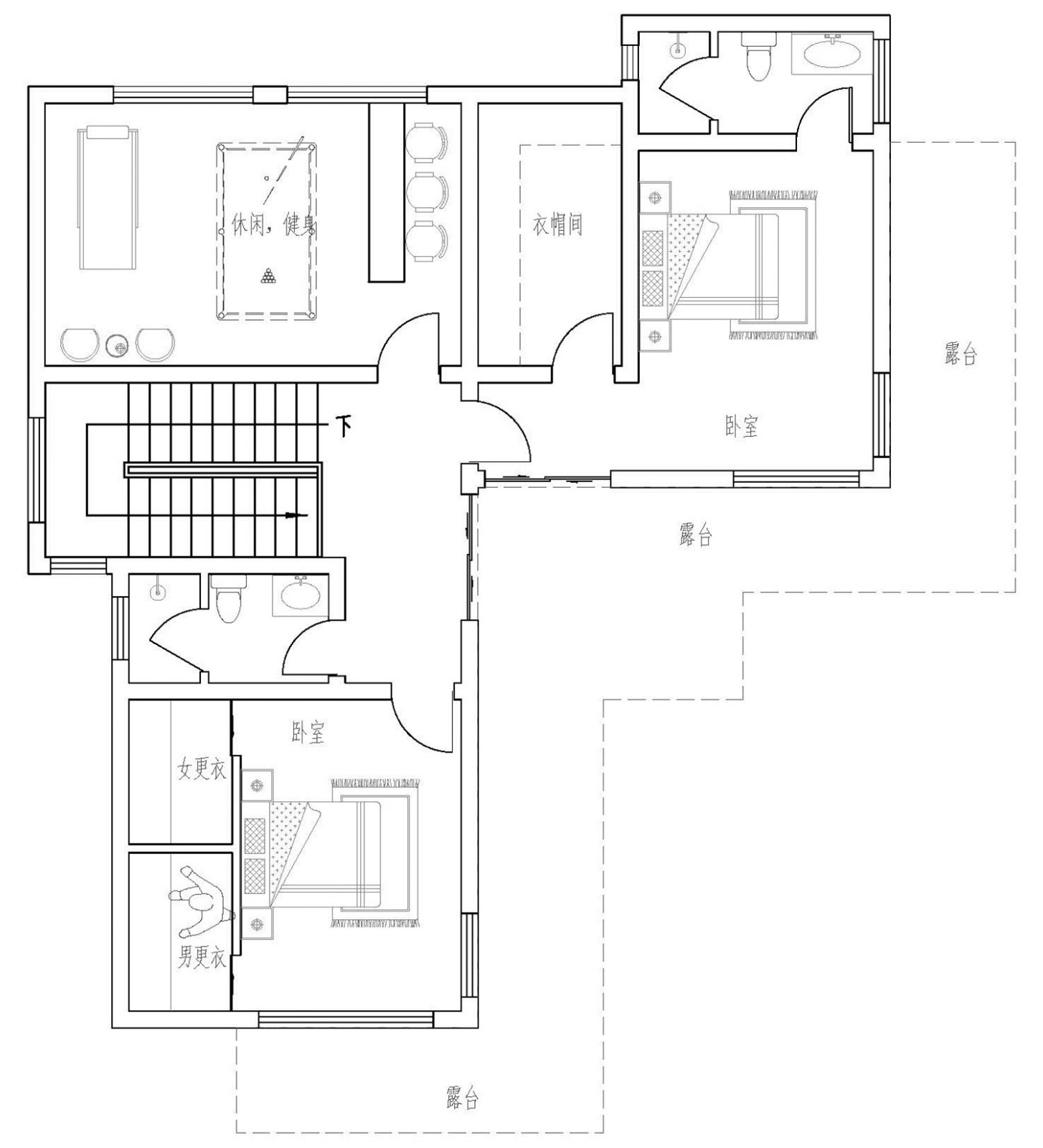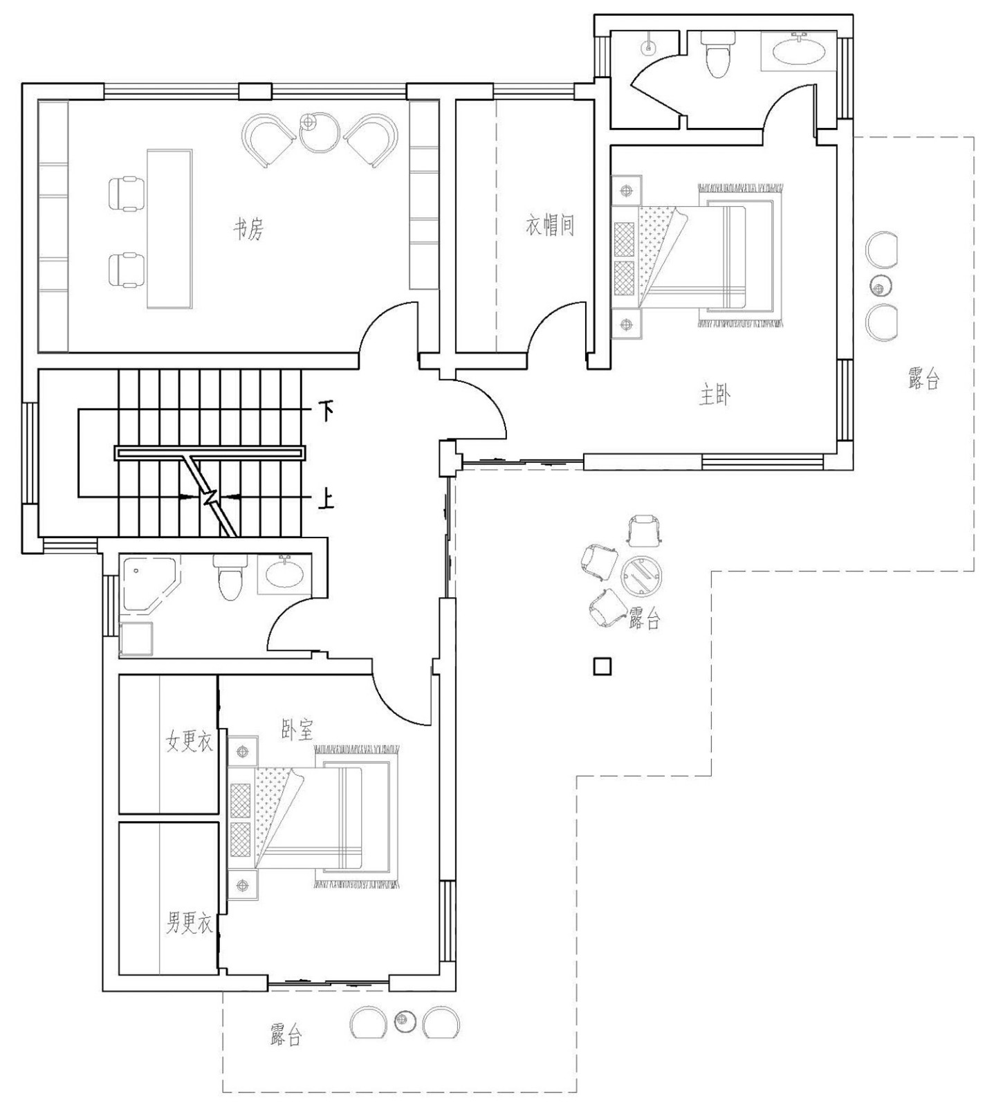 客廳、餐廳、廚房、臥室、公衛(wèi)、陽(yáng)臺(tái)、露臺(tái)。