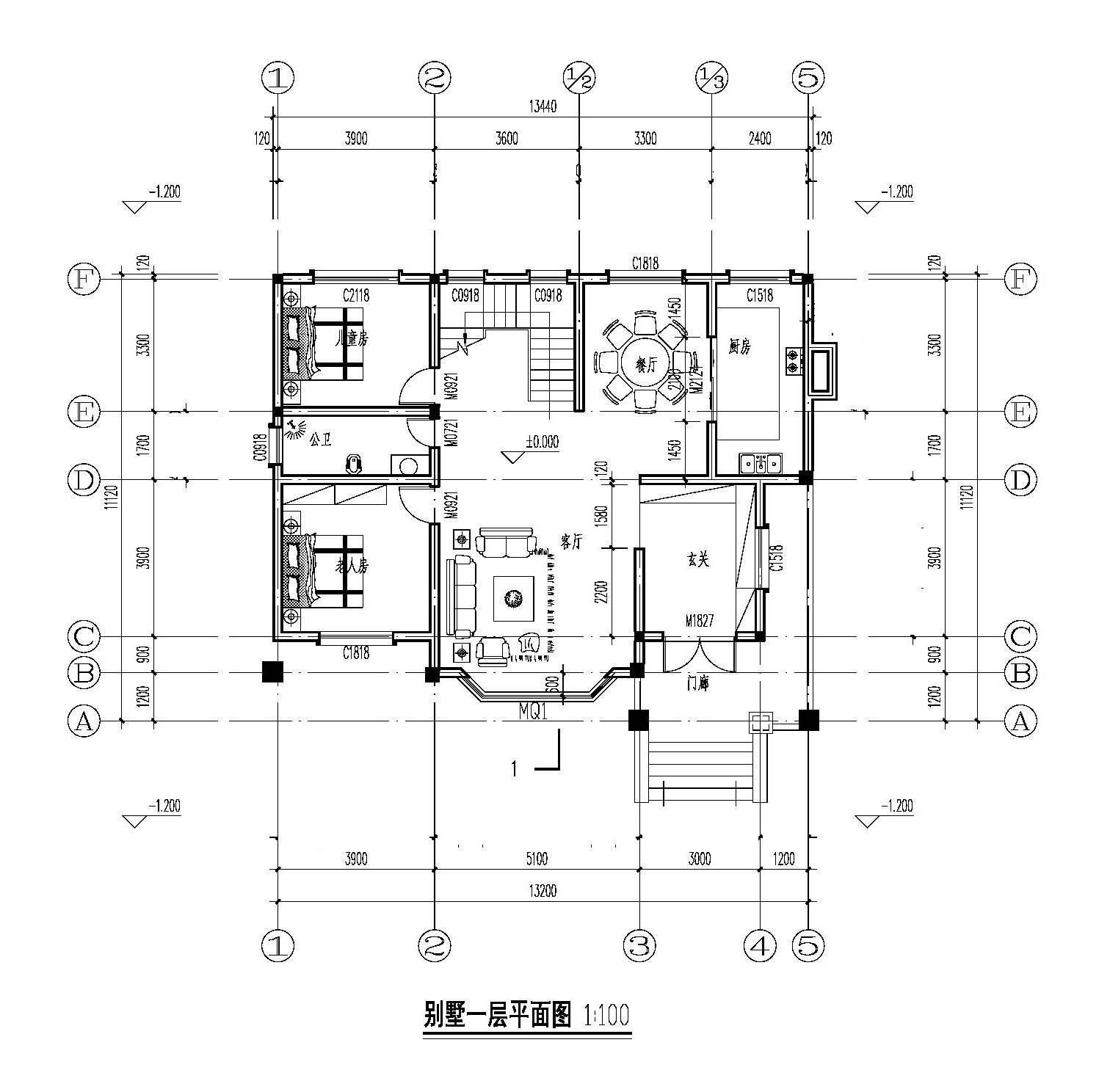 建筑占地:13.2m×11.1m