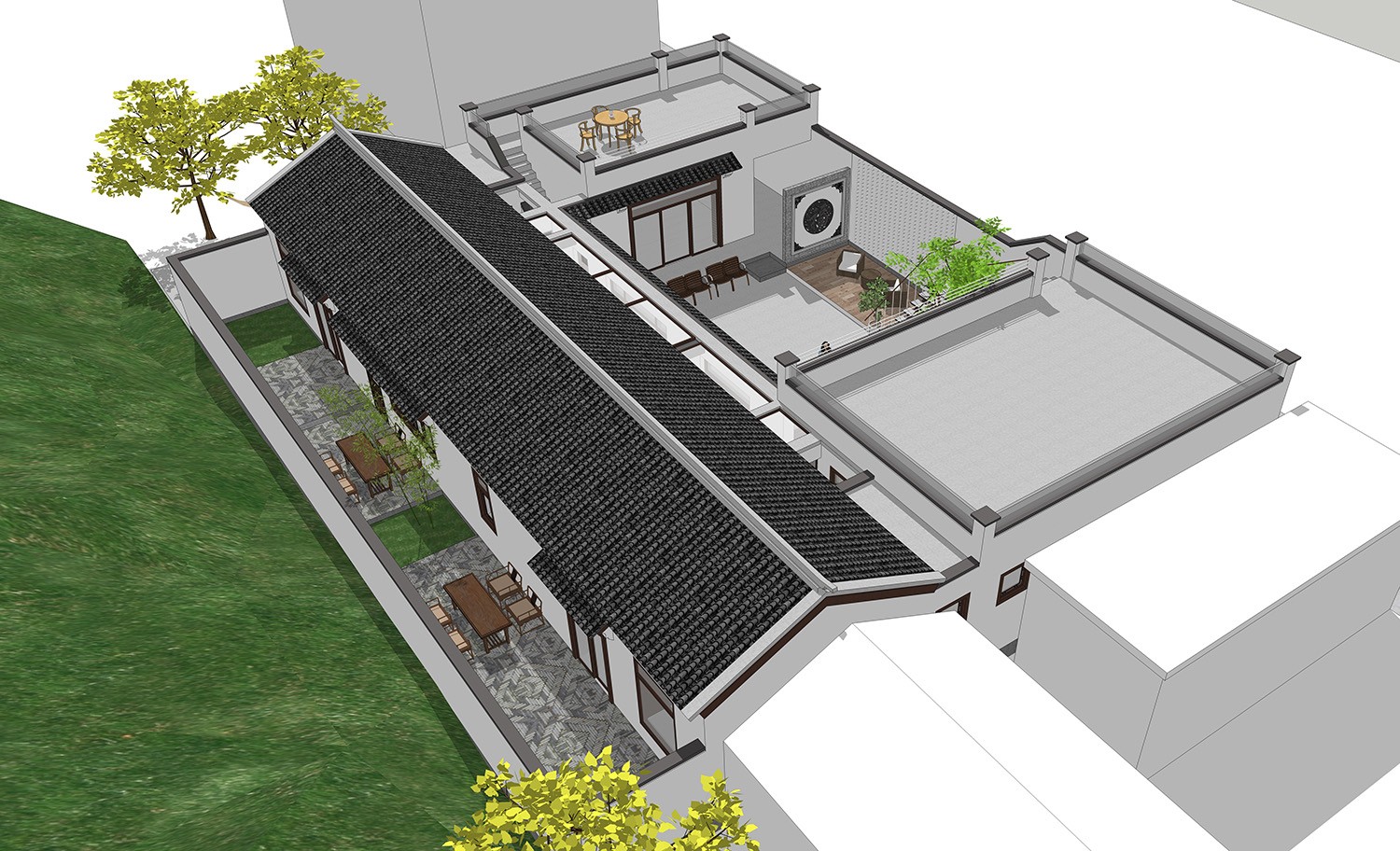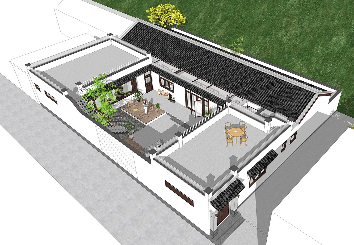 能晾曬糧食的一層新中式農(nóng)村自建房設(shè)計(jì)圖