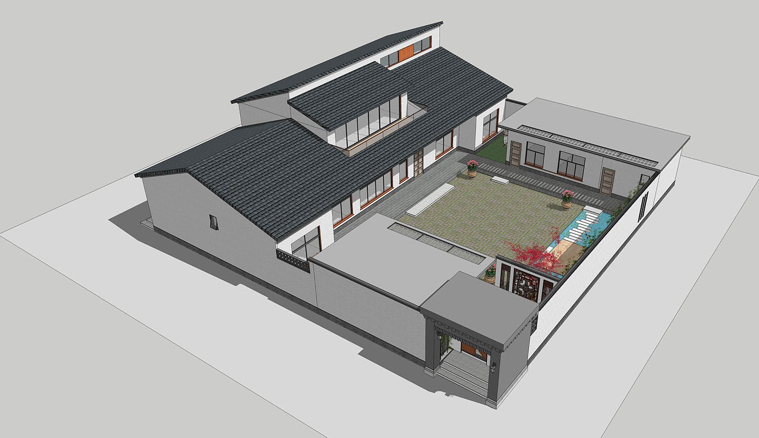 有商鋪的農(nóng)村二層新中式別墅設(shè)計