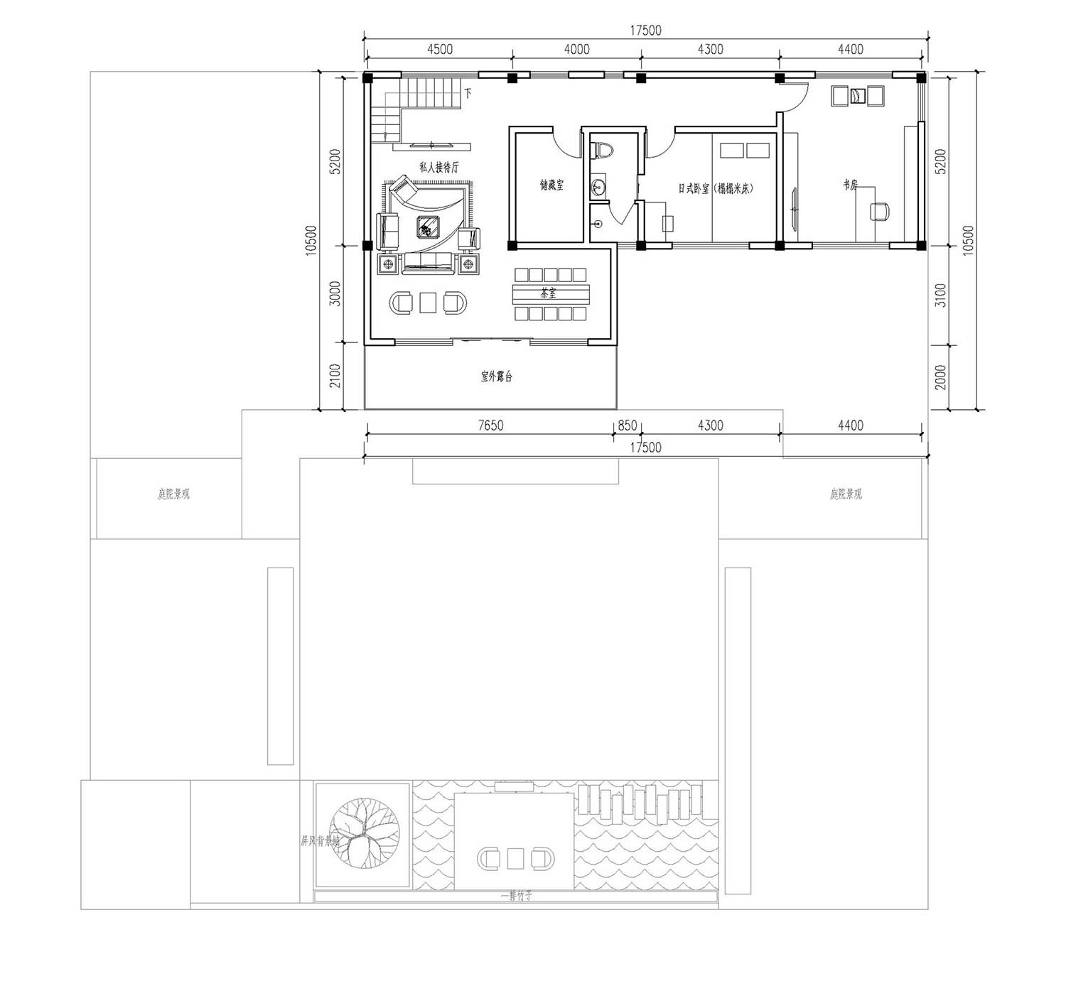 客廳、餐廳、廚房、臥室、公衛(wèi)、陽臺、露臺。