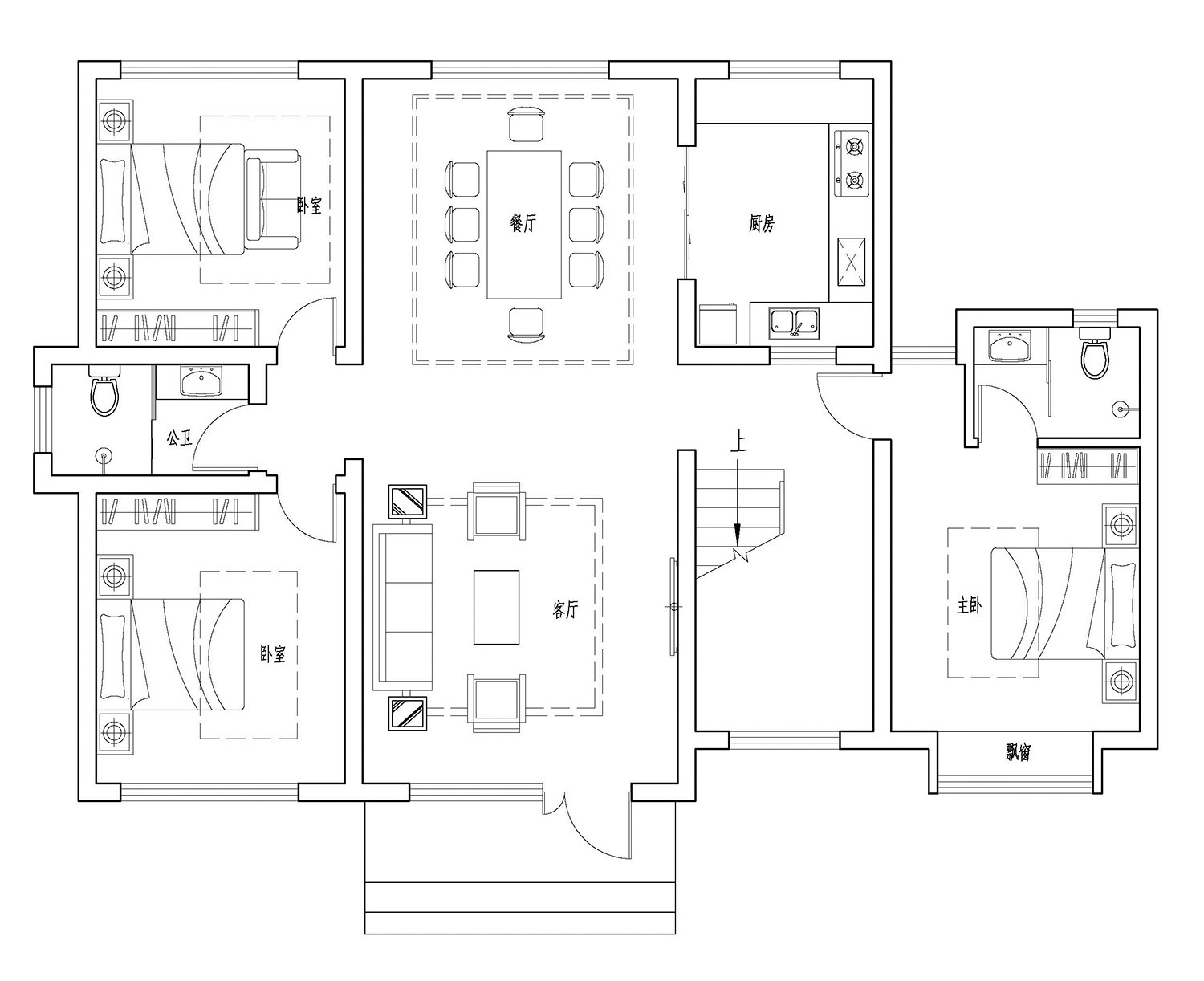 客廳、餐廳、廚房、臥室、公衛(wèi)、陽臺、露臺。