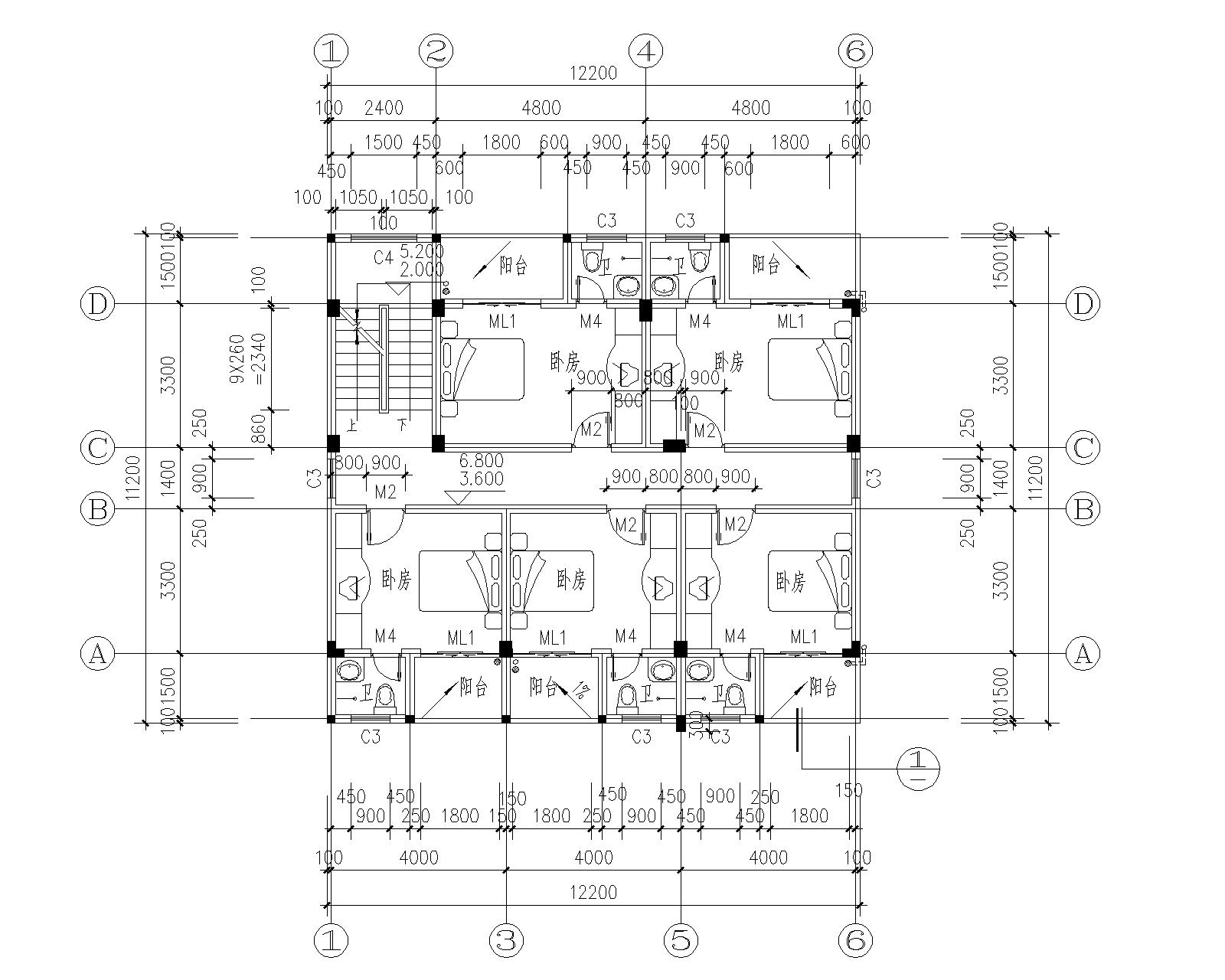 功能設(shè)置:設(shè)置5間臥室,各自帶衛(wèi)生間及陽(yáng)臺(tái)。