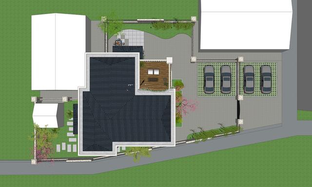 一層入口在北側,通過L型院子緩解了與鄰居家距離過于接近的尷尬。主要房間都面向南側獲得良好的采光。