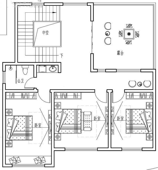 三層的臥室全部南向采光,獲得良好的居住體驗。東北側的露臺為家庭休閑聚會提供場所,打造舒適的居住體驗。
