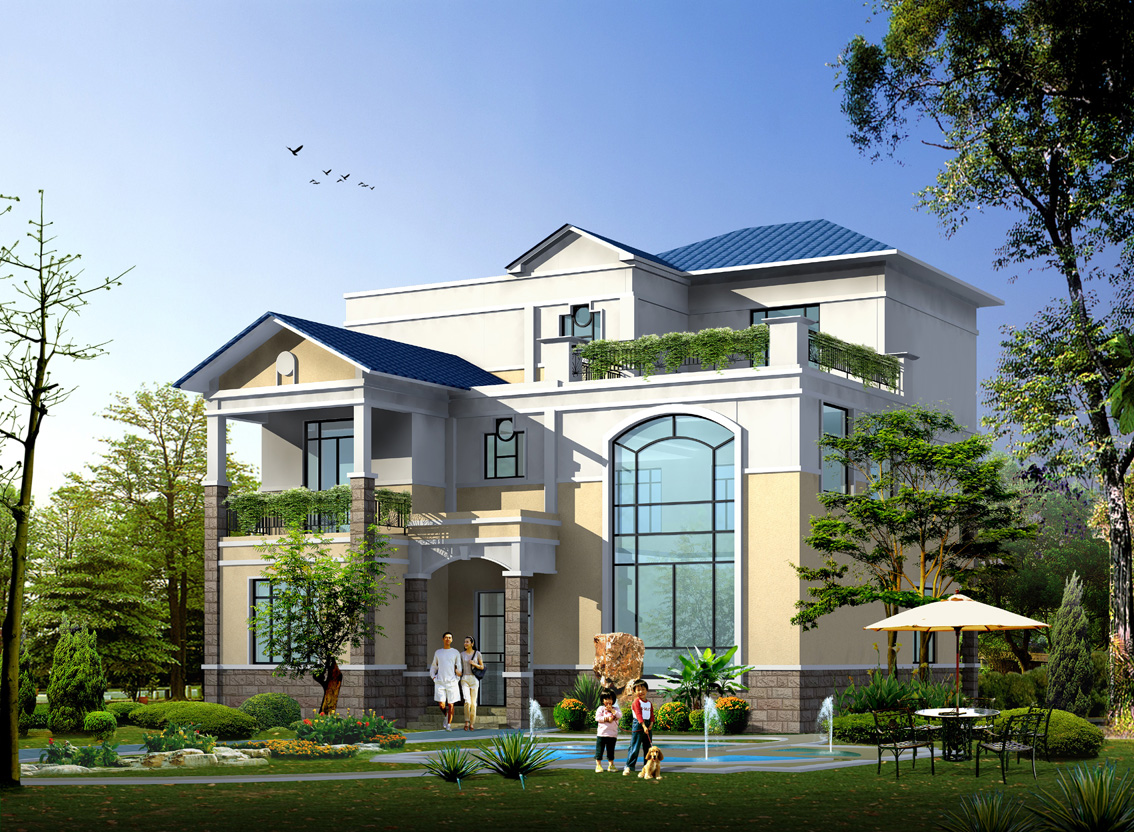 鄉(xiāng)村三層別墅設(shè)計圖紙 自建房(含平面圖+效果圖)
