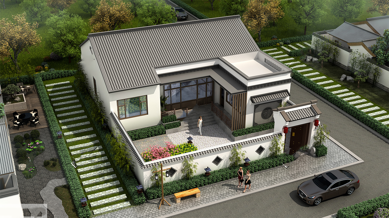 農(nóng)村自建房設(shè)計圖一層庭院+茶室+大客廳,15×11米一層中式小院,舒適度拉滿