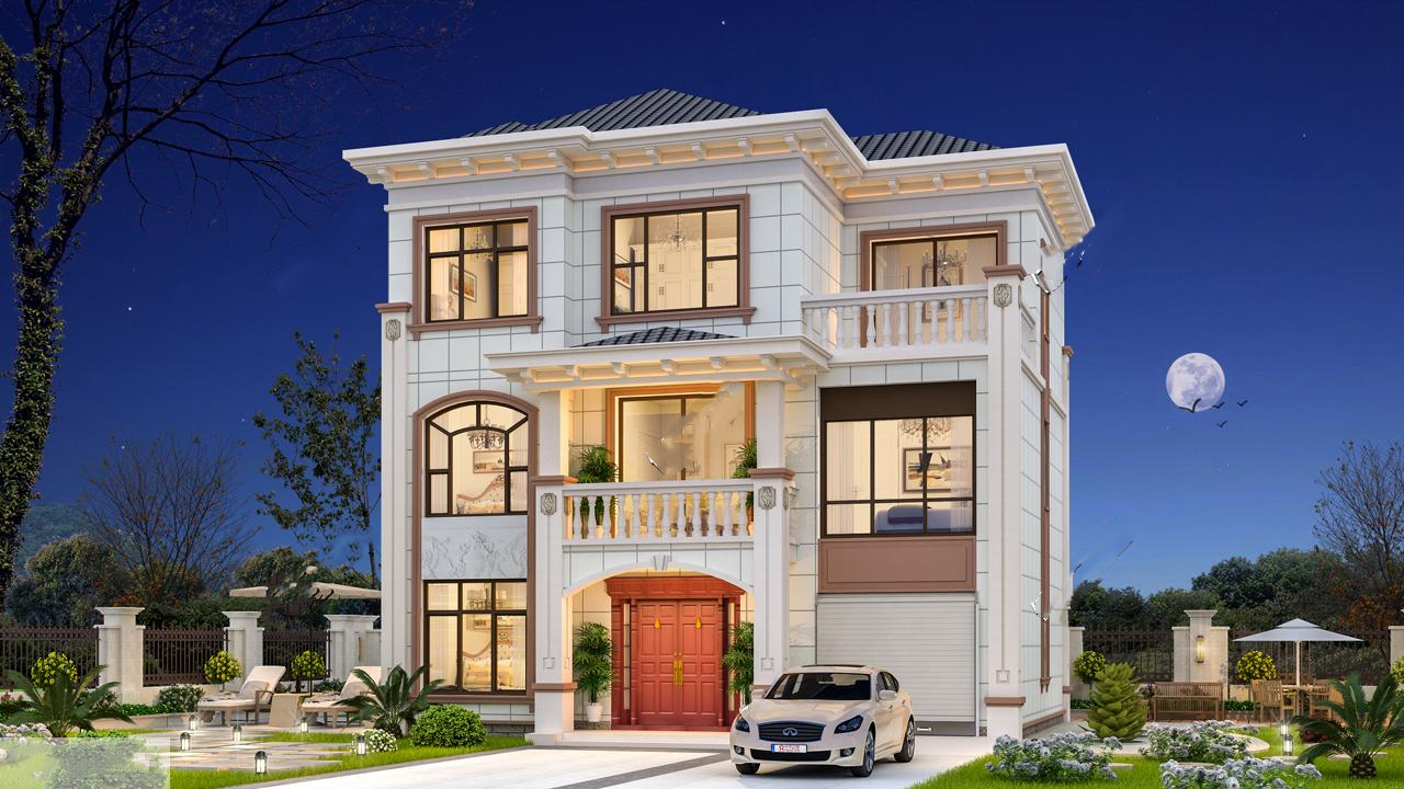 小李的母親選的本套精致華麗的簡(jiǎn)歐鄉(xiāng)村別墅建筑設(shè)計(jì),別墅外觀設(shè)計(jì)精美華麗,建筑色彩明亮,通透的玻璃元素更顯居室敞亮,在農(nóng)村建這樣一棟自建房別墅設(shè)計(jì)圖,十分惹眼。