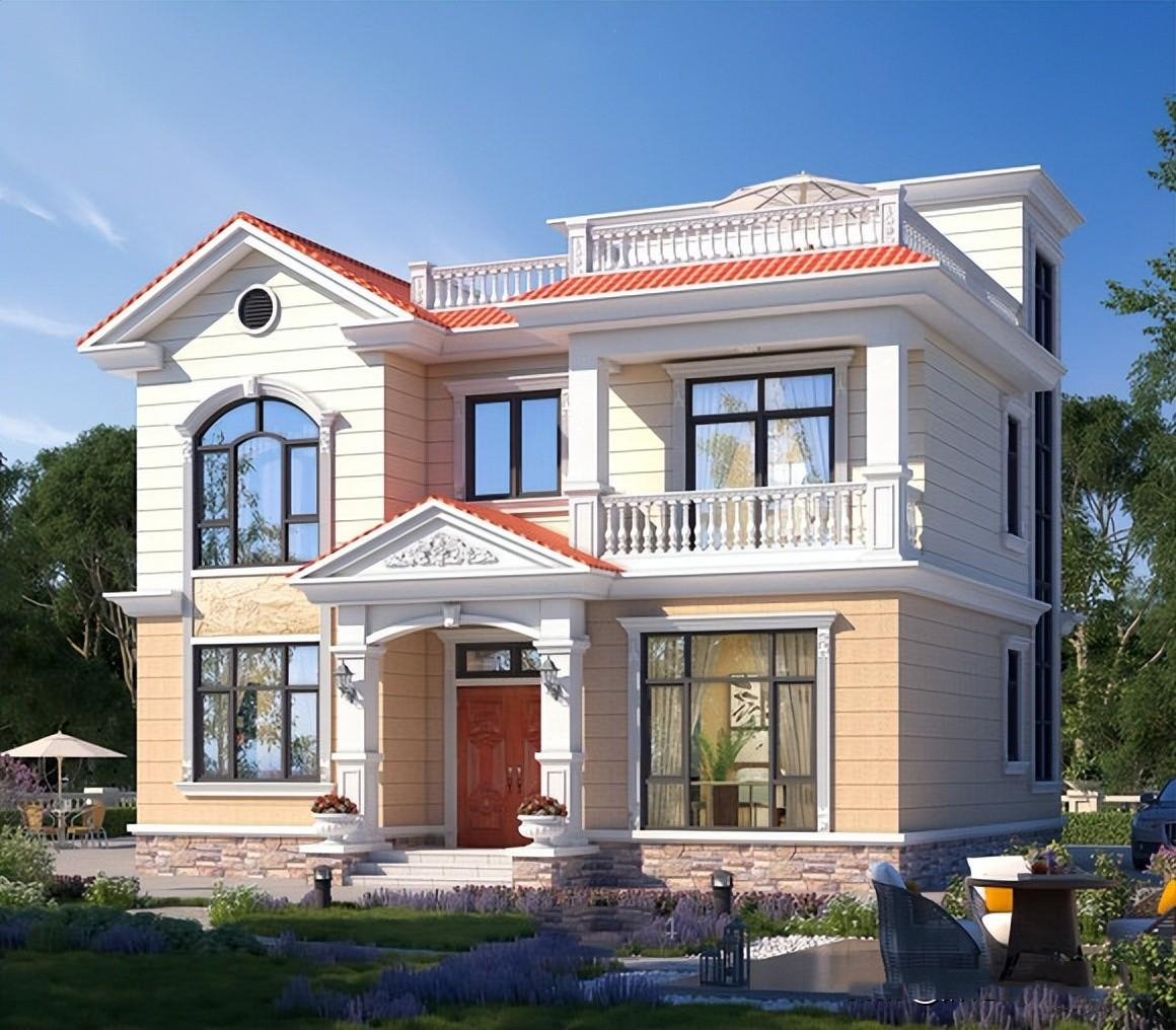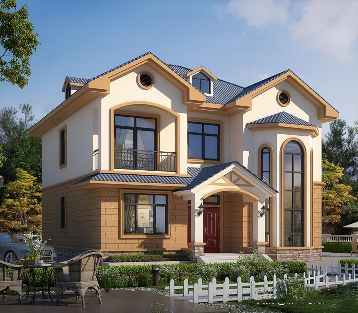 房屋設(shè)計(jì)圖大全第七套:比較經(jīng)典的簡(jiǎn)歐做法,顏色搭配有著“抱翁灌圃”式的質(zhì)樸,整棟建筑煥發(fā)出田園牧歌式的寧?kù)o。