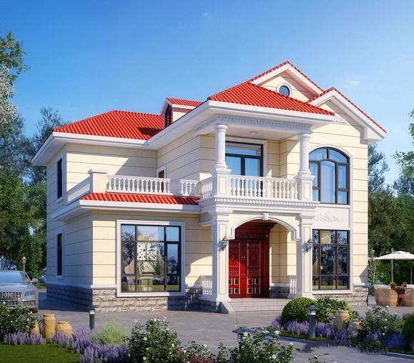房屋設(shè)計(jì)圖大全第一套:簡(jiǎn)歐二層房屋設(shè)計(jì)圖 弧形窗與老虎窗是簡(jiǎn)歐風(fēng)格的經(jīng)典做法,造型四平八穩(wěn),簡(jiǎn)單大氣