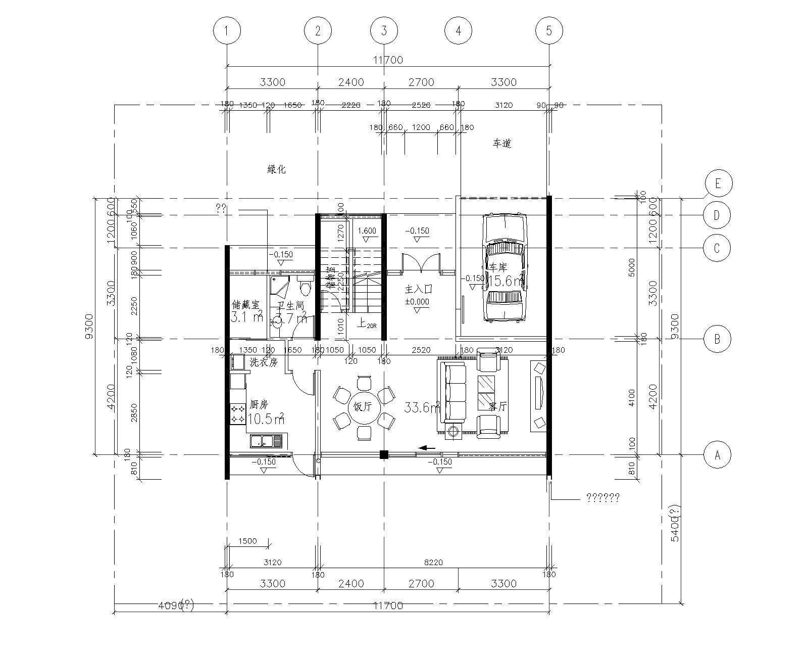 功能設(shè)置:客廳、餐廳、廚房、儲藏室、衛(wèi)生間、車庫