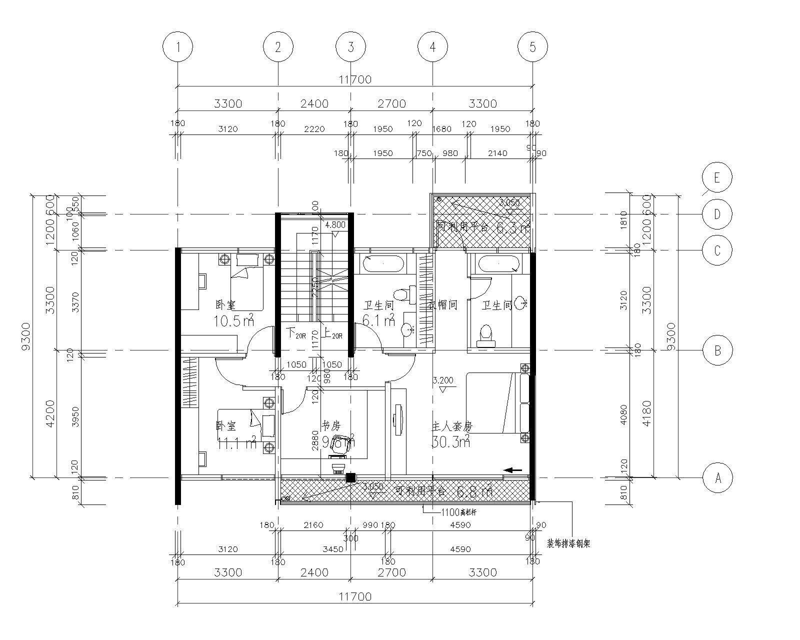 聯(lián)排鄉(xiāng)村二層別墅二層平面圖