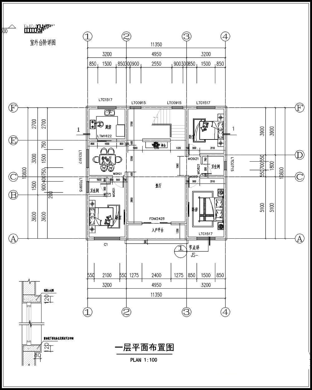 一層:三室兩廳一廚兩衛(wèi)一樓梯