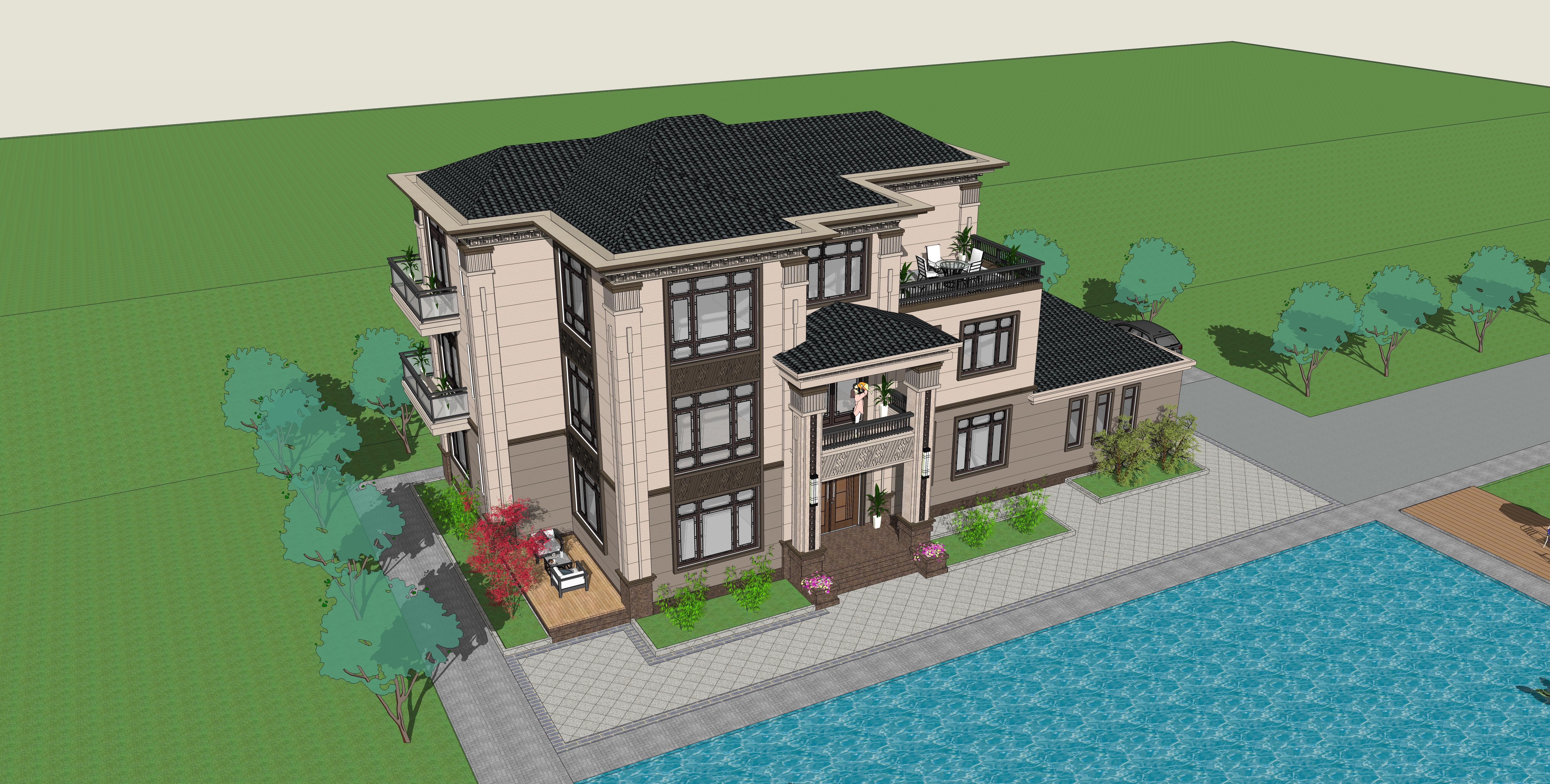 2022年全新中式三層別墅外觀設(shè)計圖,農(nóng)村自建房新中式三層別墅設(shè)計圖