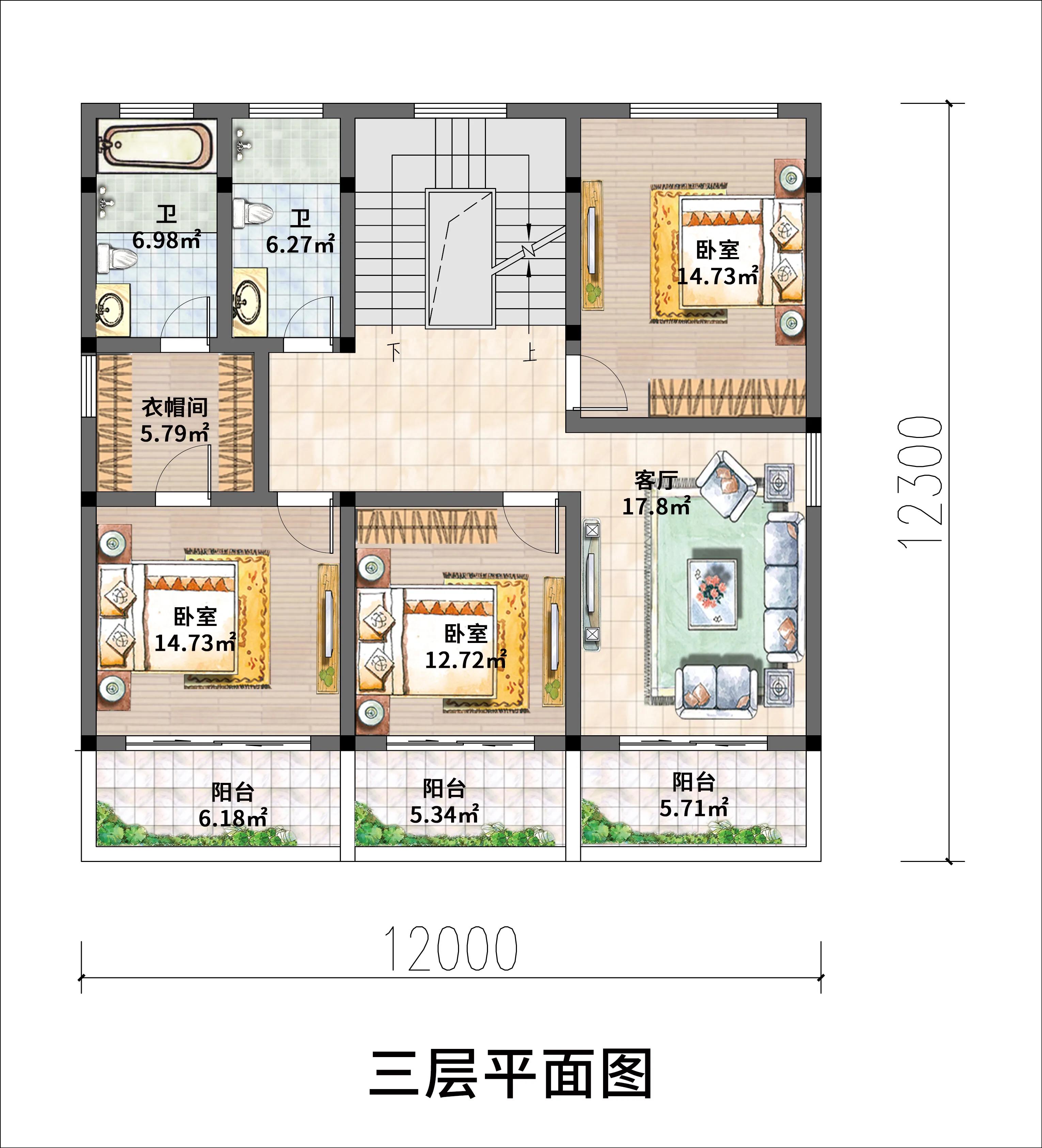 ?二、三層布局基本一致,強(qiáng)調(diào)空間氛圍感,三臥+客廳的配置,滿足每位家人的居住要求。