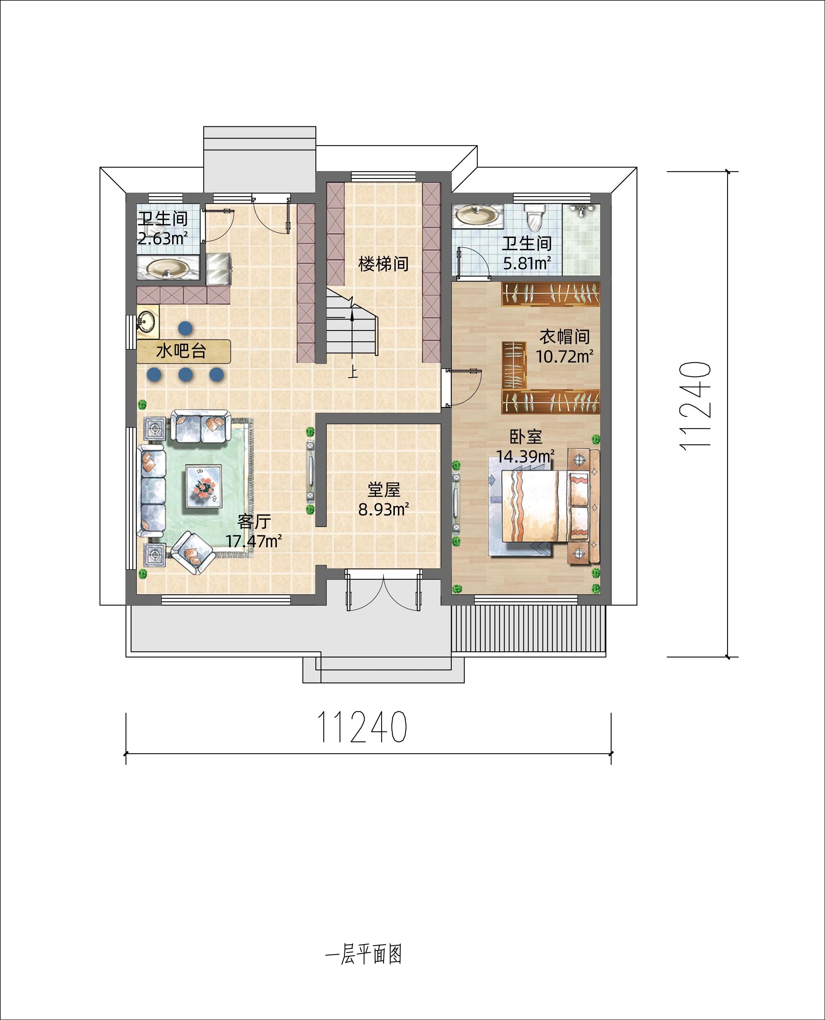 一層入戶做了一個(gè)堂屋設(shè)計(jì),符合農(nóng)村建房風(fēng)俗。客廳空間寬敞明亮,水吧臺(tái)豐富了室內(nèi)空間的層次感,一層臥室適合作為老人房,方便日常起居。