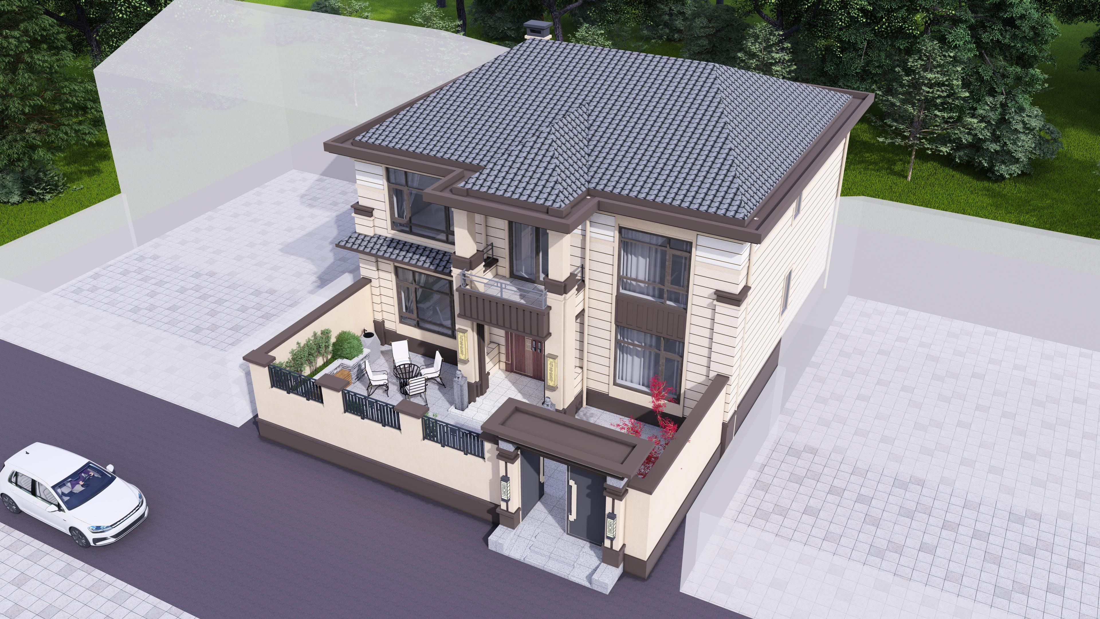 新中式二層房屋設(shè)計圖,兩層鄉(xiāng)村自建房屋小別墅設(shè)計(帶庭院)
