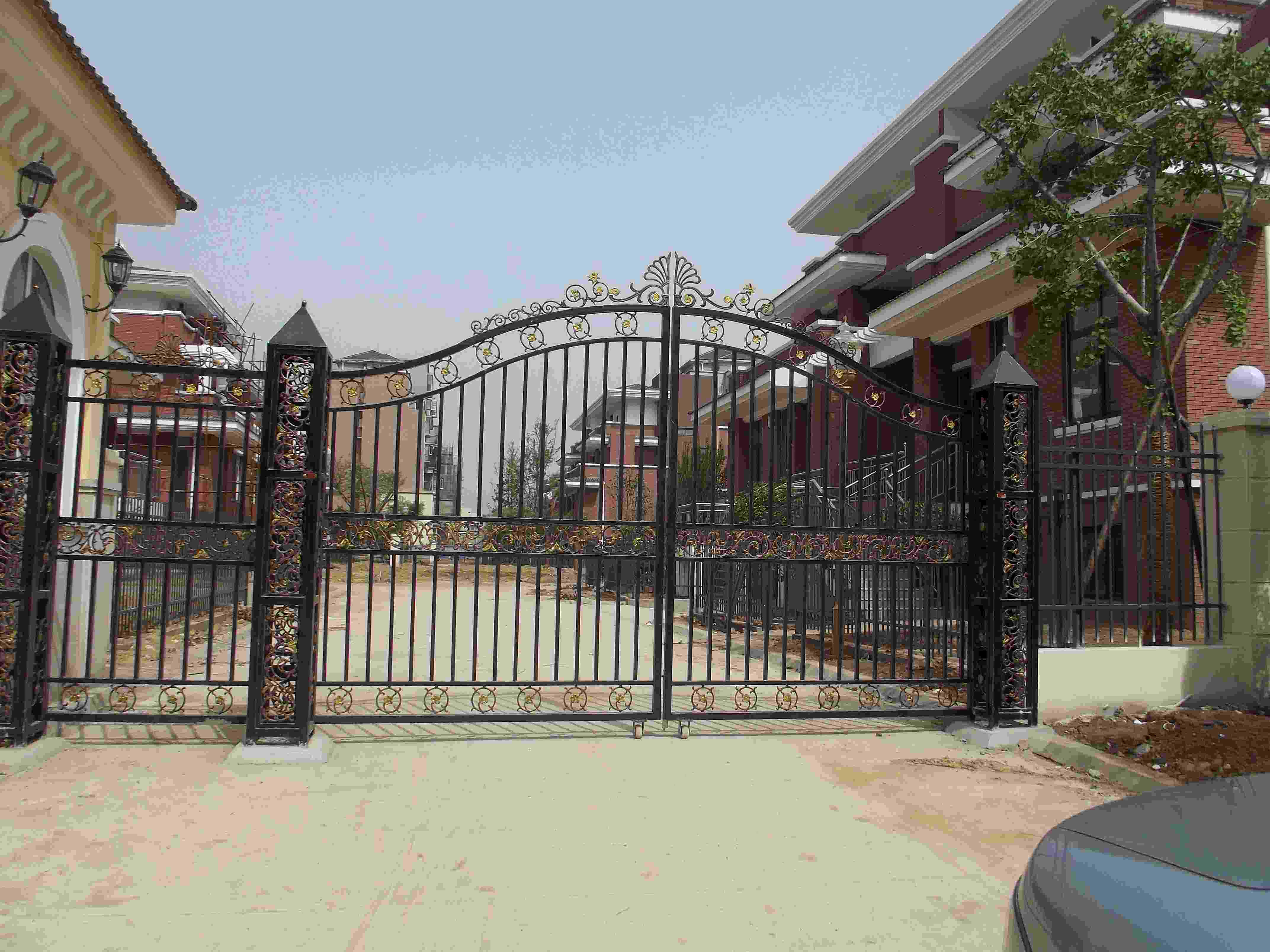 4、鐵藝門:它的造型和花紋都是仿古的仿銅做成的,但是它的表面是經(jīng)過了打磨后,更加平整的,同時擁有著天然石材的質(zhì)感;鐵藝門使得整體的視覺效果比較強。