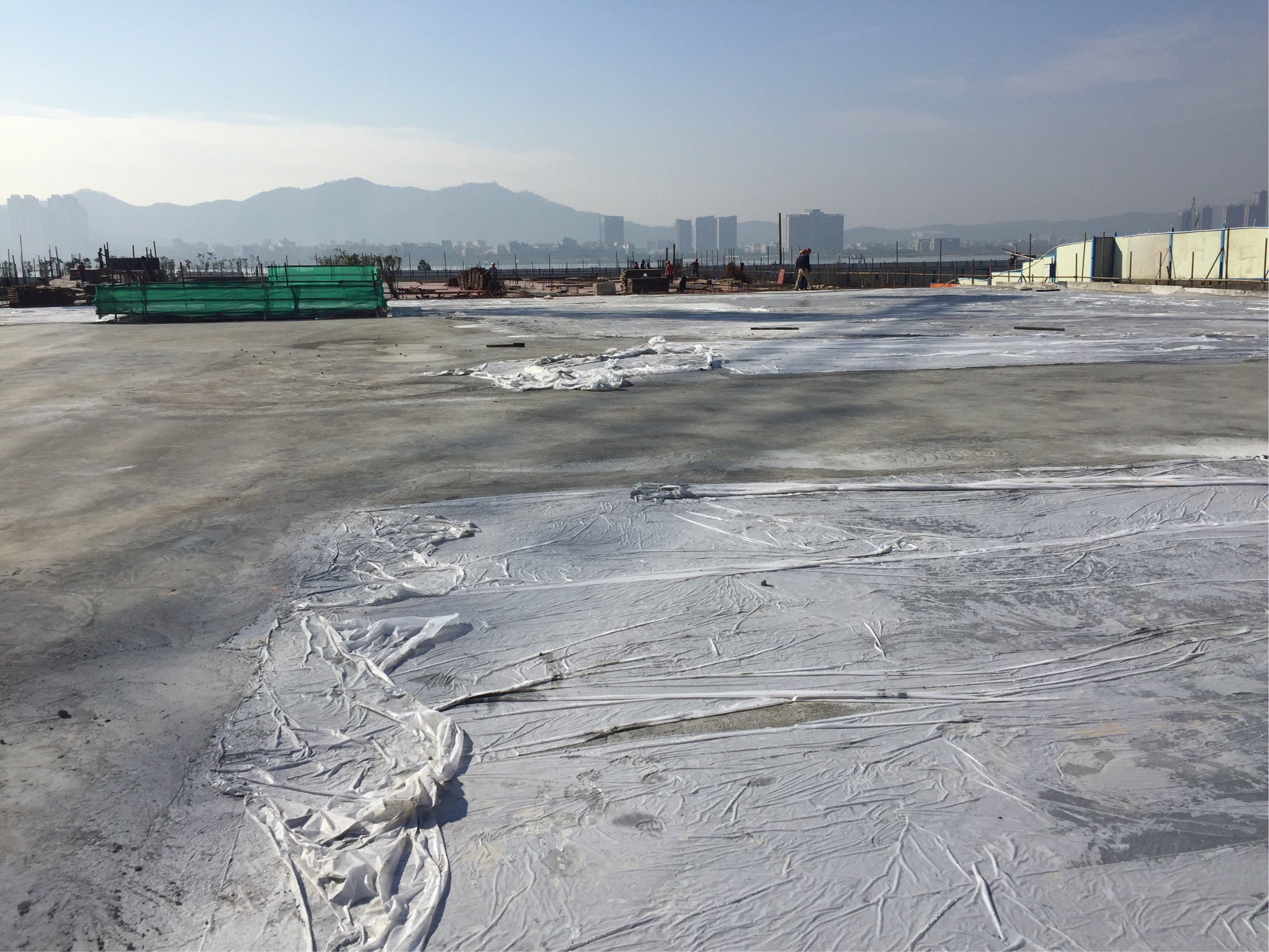 2、混凝土終凝前用塑料薄膜對混凝土表面進行遮蔽,避免雨水沖刷混凝土表面;