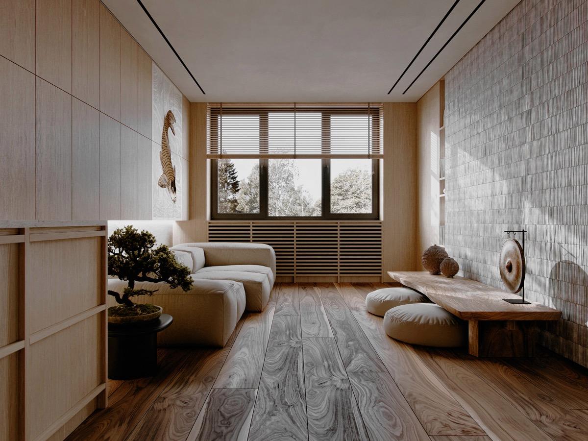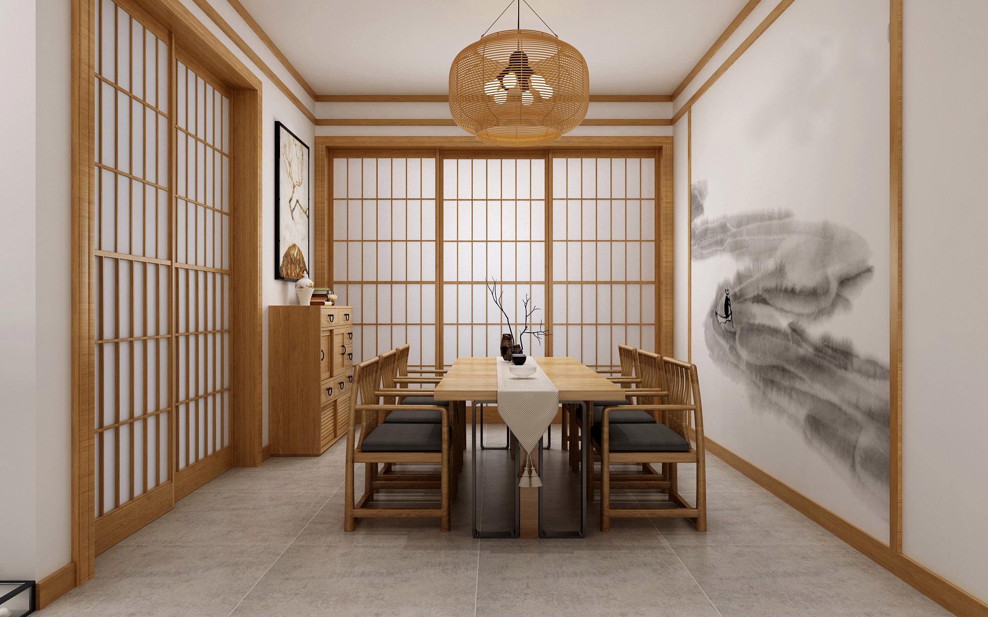 2.布局設計.對于室內空間的劃分,日式風格的客餐廳是比較典型的,各種柜子和屏風,各類小物件的擺放都非常講究。