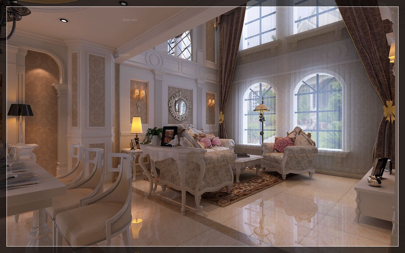 4.歐陸風(fēng)情:歐洲古典風(fēng)格特指歐洲貴族階級(jí)享受奢華生活的范疇。在家具陳列方面,可選擇圓形或拱形壁紙。歐陸風(fēng)格的家居布置,講究空間的層次感和延續(xù),注重使用材質(zhì)的表達(dá)。歐式風(fēng)格的特點(diǎn)是線條繁瑣,通透性強(qiáng)。