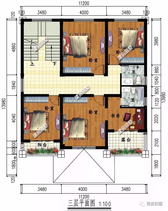 布局說(shuō)明:首層配有一室兩廳一廚一衛(wèi),設(shè)有小堂屋,前后通透性好;二層設(shè)以兩間臥室,其中主臥為內(nèi)帶書(shū)房和獨(dú)衛(wèi)的套房,外設(shè)陽(yáng)臺(tái);三層有四個(gè)臥室設(shè)計(jì),一間主臥室,三間次臥室,外帶露臺(tái)觀景。