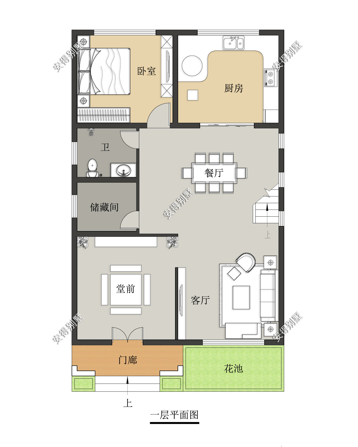 別墅首層占地面積100㎡,開間為:8.2米,進(jìn)深為:12.2米,共2層,總建筑面積為:205.24㎡;