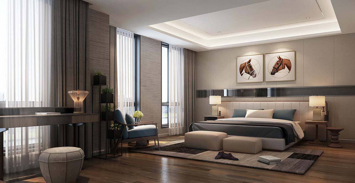 1、別墅空間較大,可分為臥房、起居室與廚房等多功能區(qū),其中主臥室既作為日常生活起居的獨立空間也是文化娛樂和社交休閑的場所,更主要體現(xiàn)了高品質(zhì)的生活品質(zhì)。