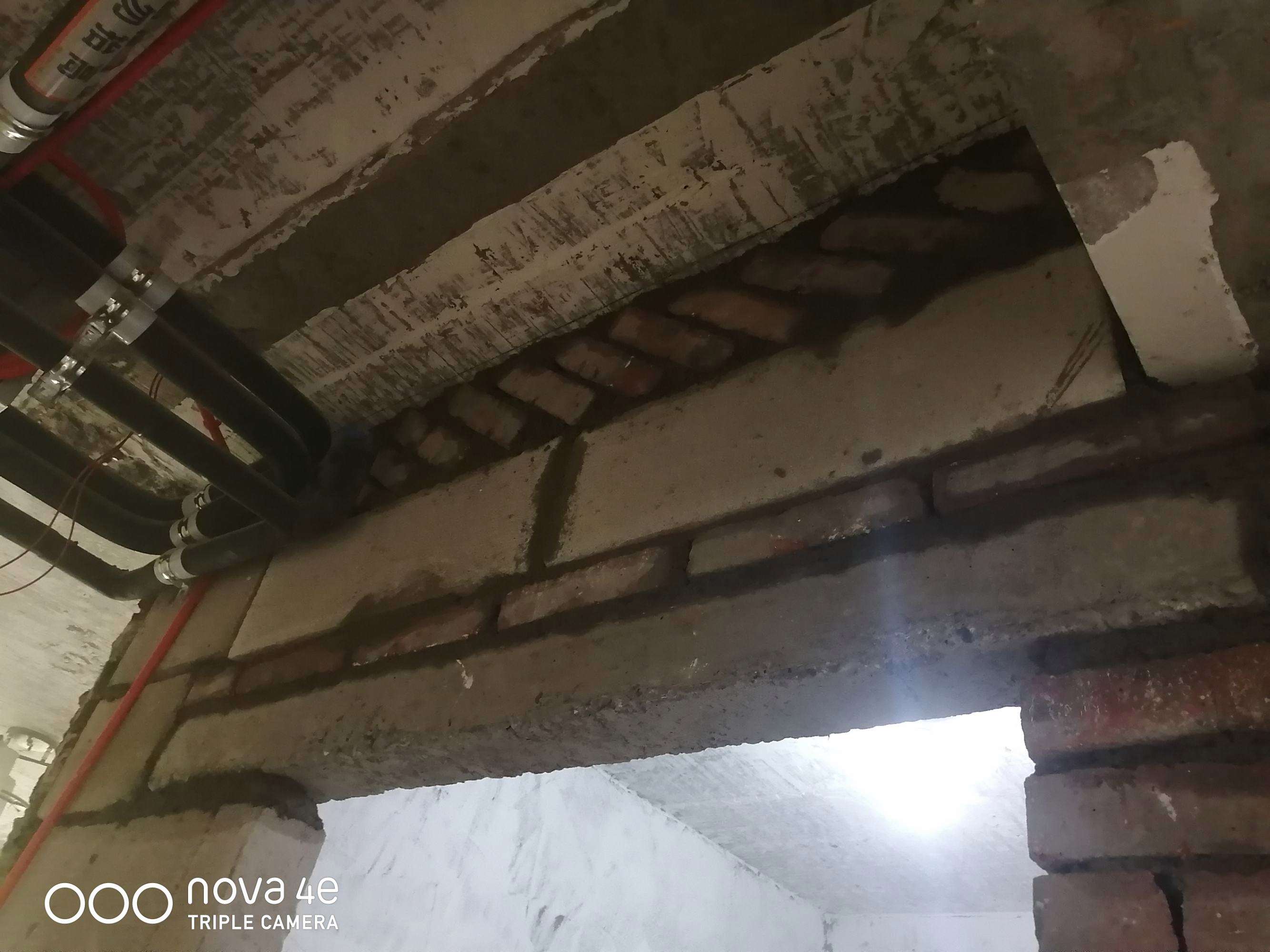 3、接著再將過梁和底部的磚頭給澆筑好。