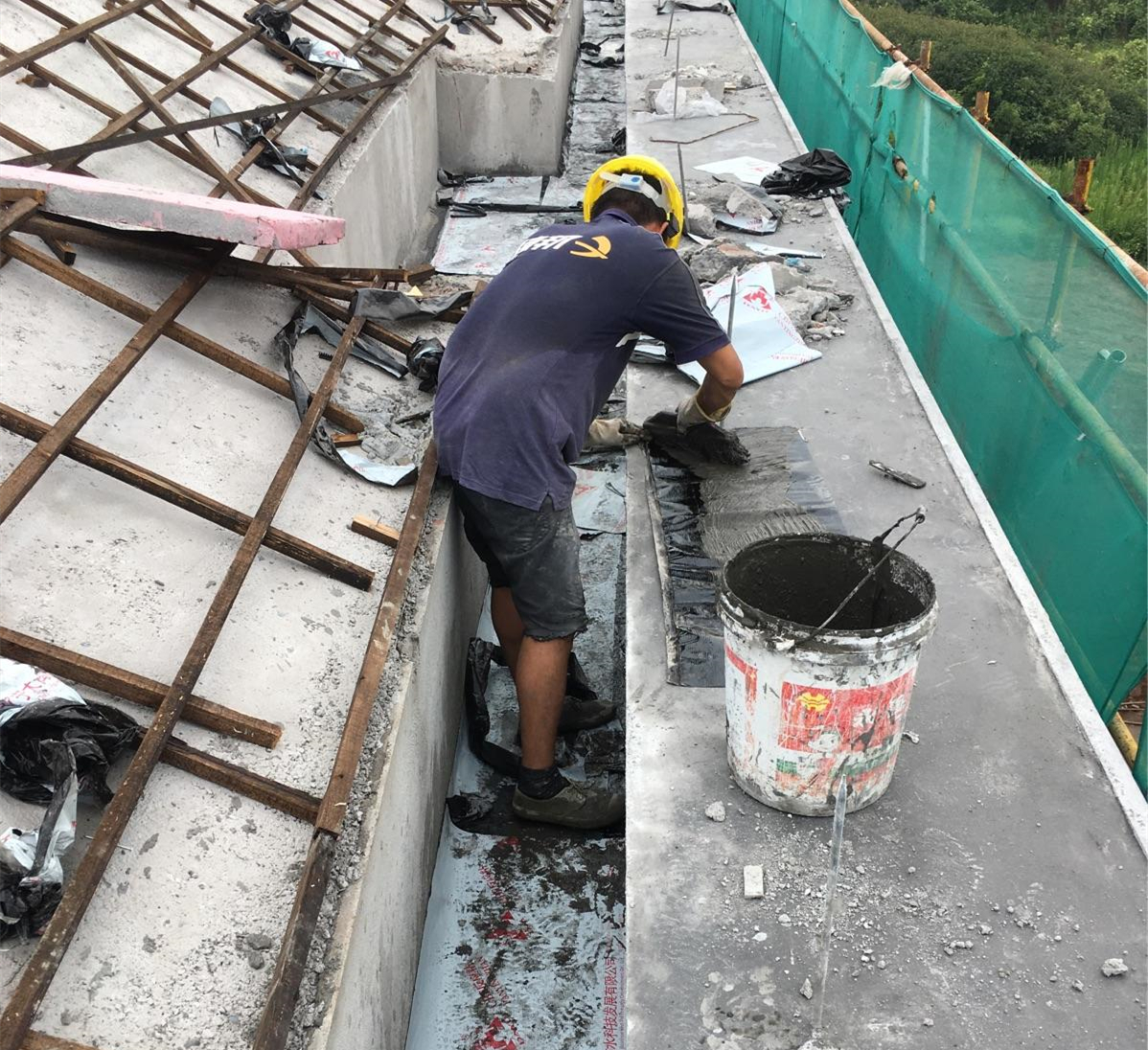 4、最后一步是基層的處理,將防水層完成之后,再用膩子進行封閉,做到無遺漏即可。
