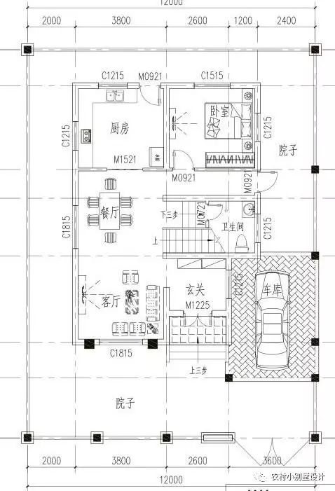 平面圖到手后發(fā)現(xiàn)設(shè)計中有些不足,二樓的公用衛(wèi)生間設(shè)計在餐廳的上方,于是我把二樓的衛(wèi)生間改為會客廳,主臥室的衛(wèi)生間改成雙門的。這樣二樓到閣樓的樓梯起步做了個平臺。衛(wèi)生間的下水恰好放在車庫處,這樣就解決了難堪的下水管道問題。