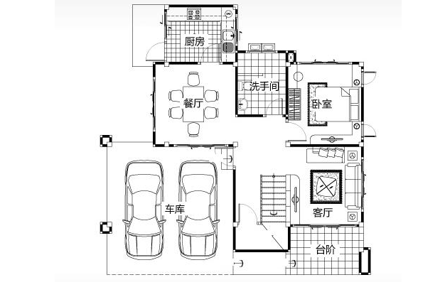 中式帶車庫鄉(xiāng)村二層自建別墅(4室3衛(wèi)二層房屋設(shè)計效果圖)